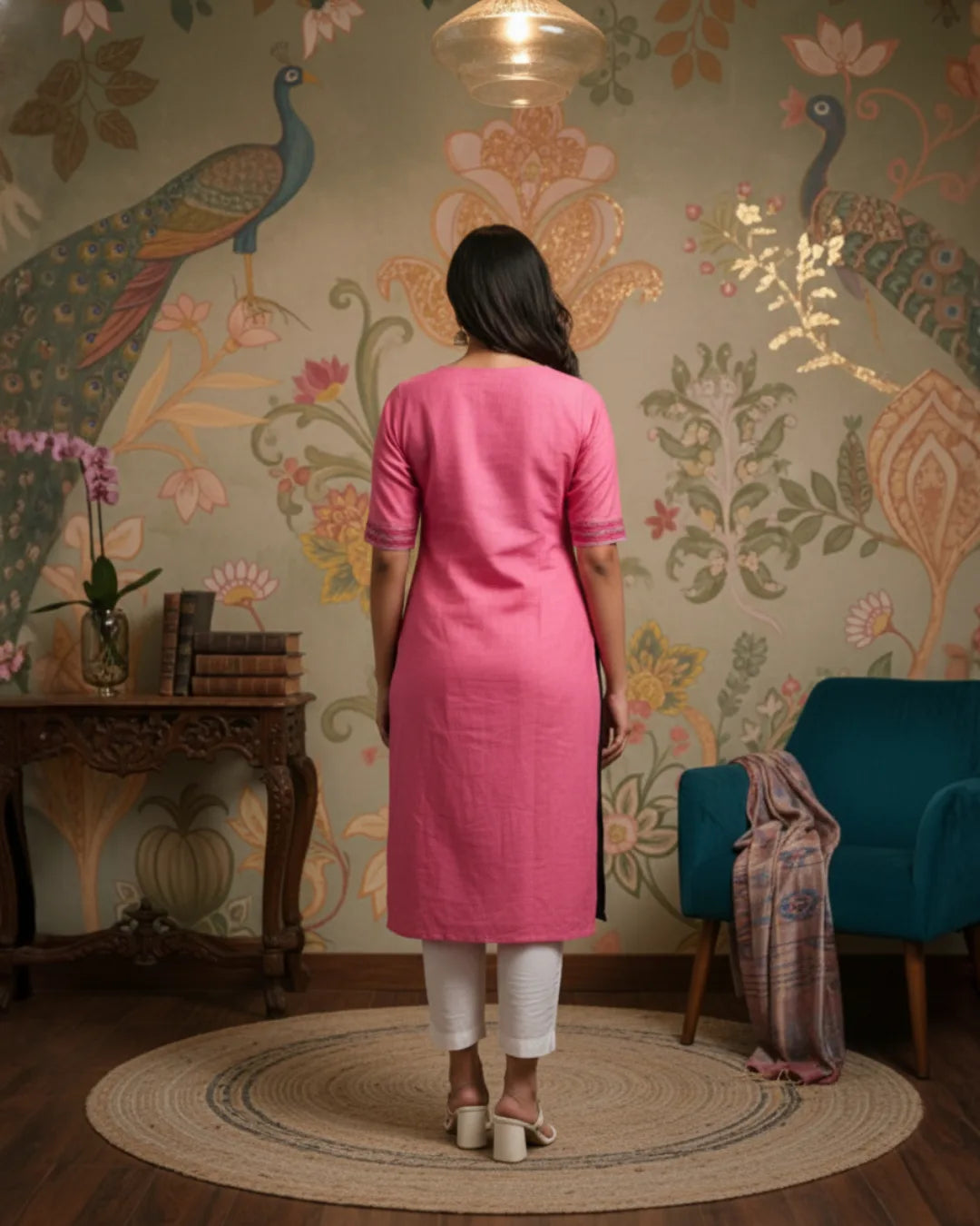 Aarika Pink & Navy Sambalpuri Cotton Kurti